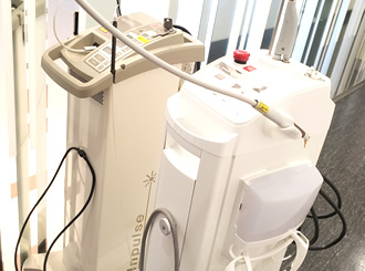 Nd:Yagレーザー、炭酸ガスレーザー装置です。歯周病治療や根管治療で殺菌療法として使用します。また、術中の止血や歯肉切除などにも活用してます。