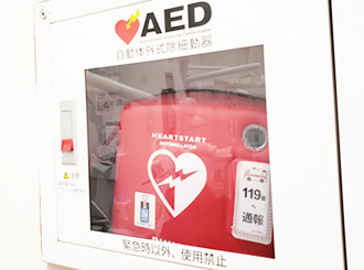 心臓が突然停止した場合、電気ショックを与えて生命を助ける大変重要な医療機器です。医院内だけではなく、コレットマーレ内での緊急時にも使用します。