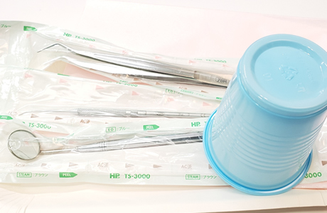 当院では、スタンダードプリコーション(標準予防策)の理念に基づいて、使用した全ての器材を徹底して洗浄・消毒・滅菌し、院内感染予防に努めております。当院の主任歯科衛生士は第2種滅菌技士の資格をもっておりますので、ご安心下さい。