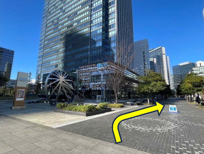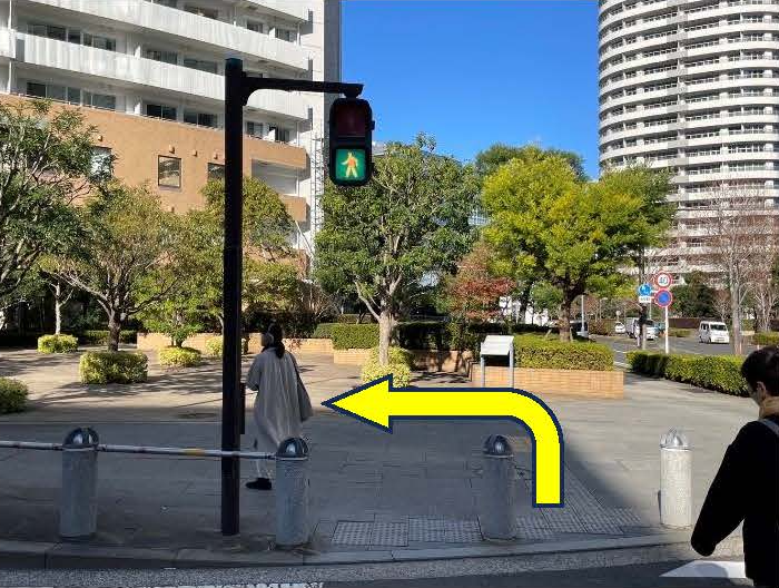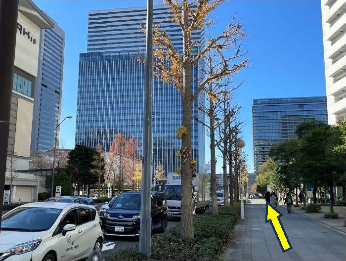 「国際大通り」から「いちょう通り」に入って「みなとみらいビジネススクエア」がある交差点を右折、最初の角を左折、次の角を左折し直進後左折。